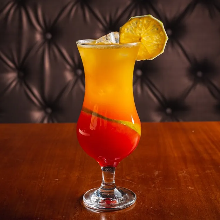 Run, vodka, suco de laranja, xarope de pêssego e groselha.